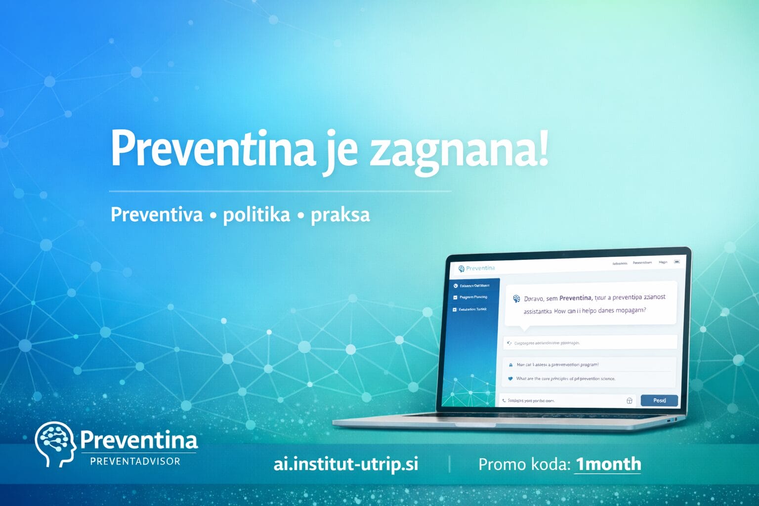 Preventina je digitalno orodje, ki pomaga strokovnjakom, organizacijam in odločevalcem pri hitrejšem dostopu do strukturiranih, na dokazih temelječih informacij s področja preventive. Chatbot temelji na zaprtem krogu preverjenih strokovnih gradiv, zato je zasnovan posebej za potrebe preventive (in ne kot splošni “internetni” AI).